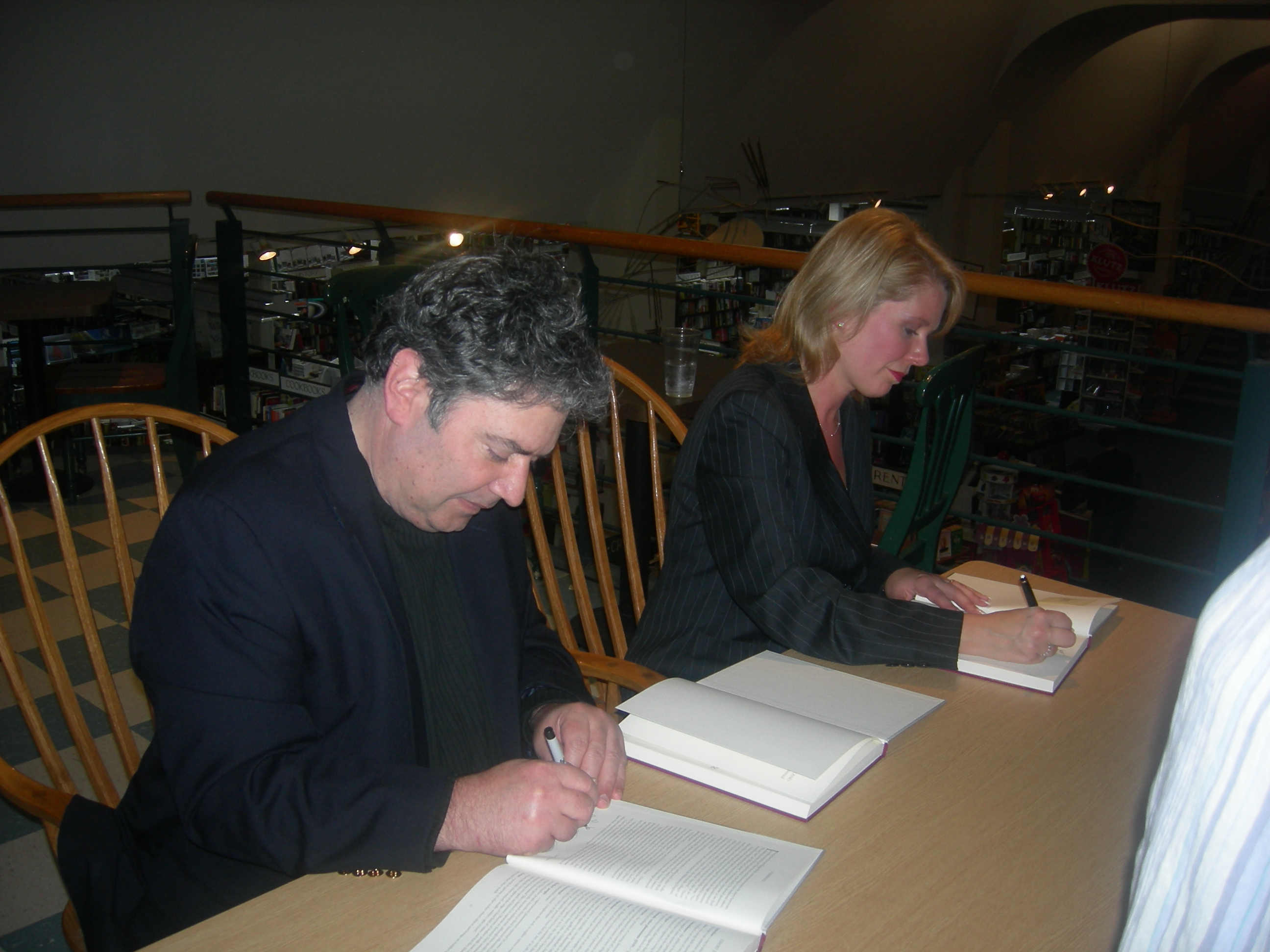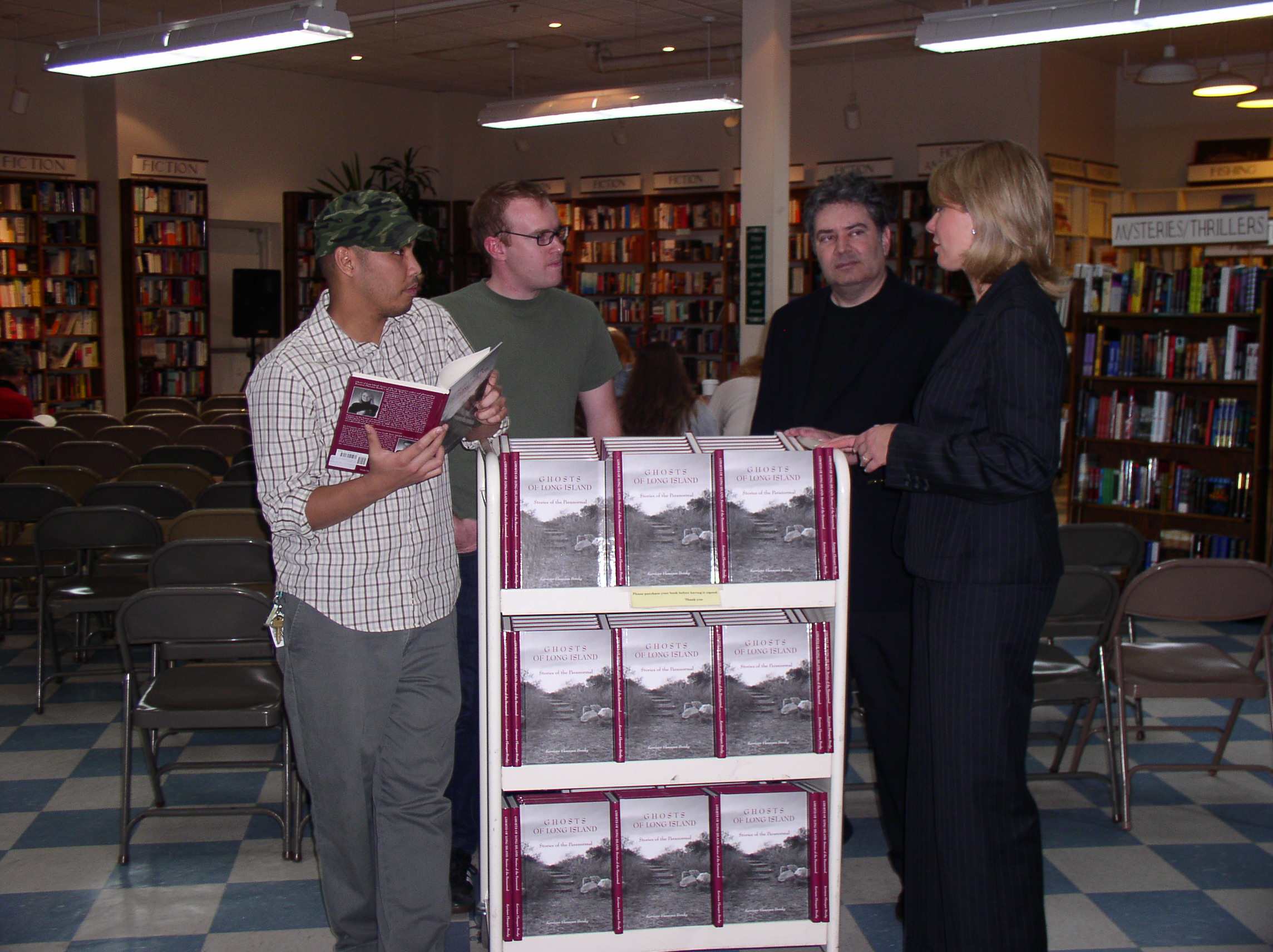 Kerriann and Joe at Book Revue with Peter Bune and Sean King, independent film makers for "Lost Suburbia" |