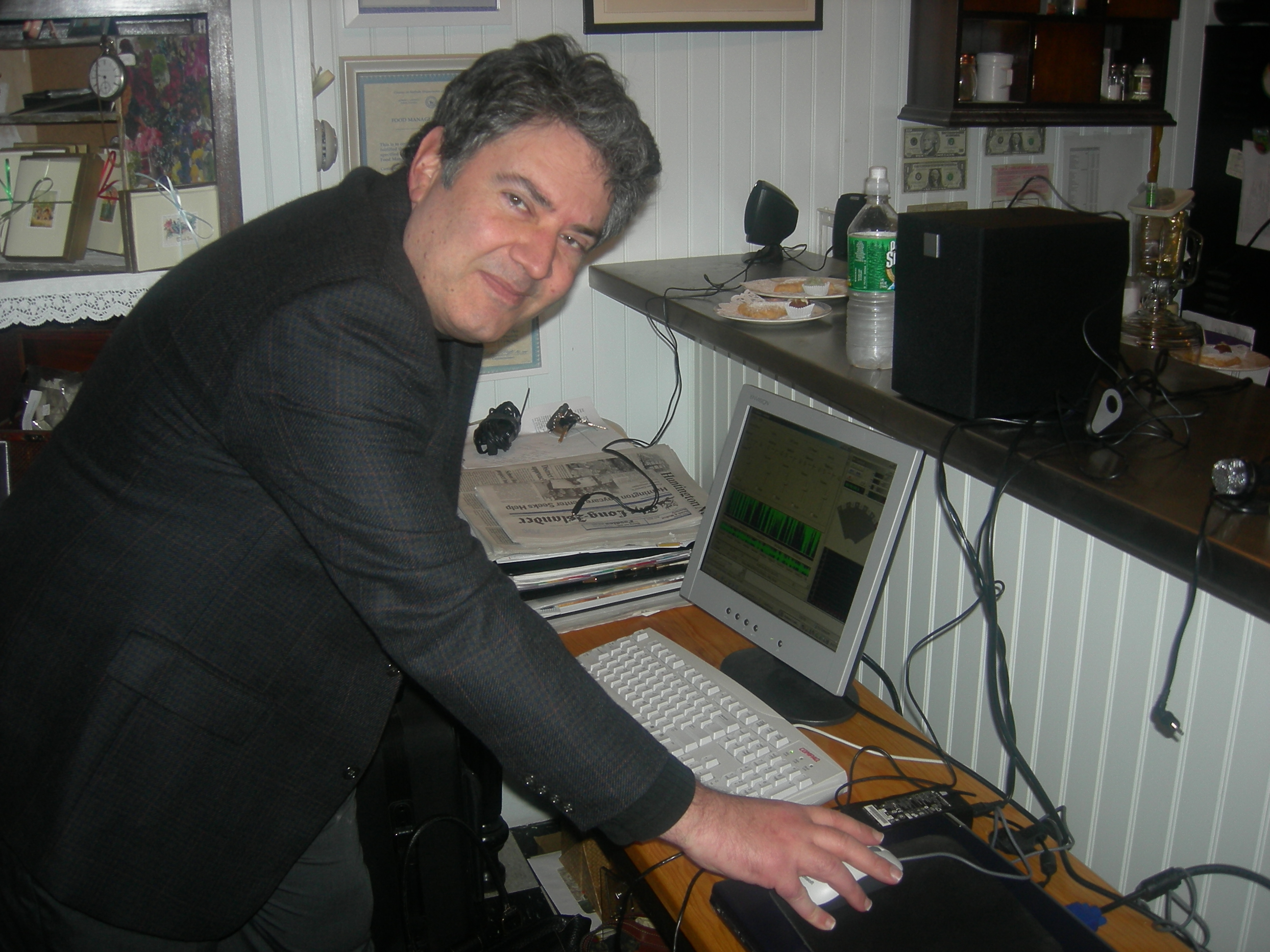 Joe getting ready to play EVPs at Tea & Tiques, Huntington, October 26, 2006 |